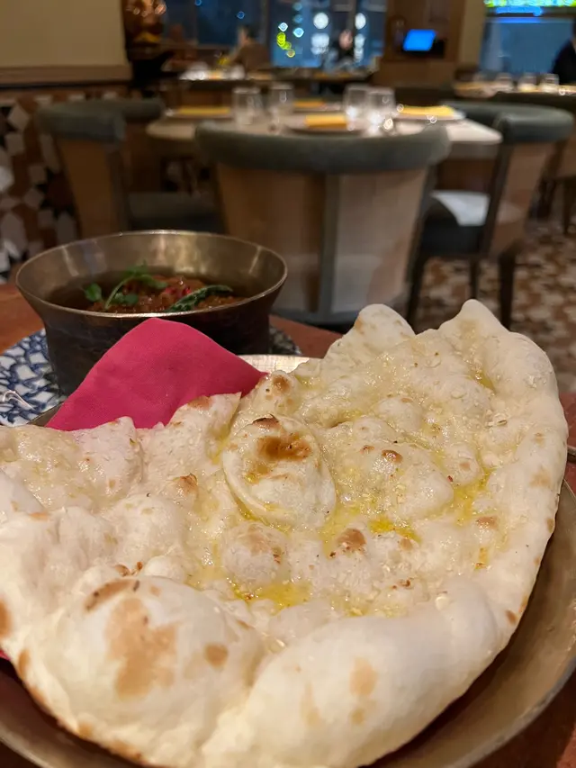 配埋蒜蓉饢餅食就prefect match 因可中和濃郁嘅咖哩咸味
