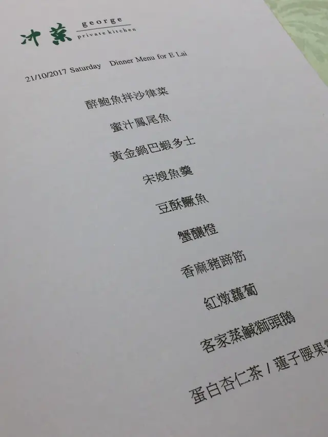 頭盤醉鮑魚的鮮味加上出色口感,大大增加食慾,鳳美魚平價材料上等味道,家中媽媽菜的回憶,宋嫂魚羮的魚鮮味百分百的呈現,豆酥鱖魚的獨特配搭直是神來之筆,蟹釀橙的食材要求和烹調方法和味道又叫人有驚喜和讚嘆,用了四隻豬的前腿筋煮出的香麻豬蹄筋其超豐富骨膠原已黏得滿嘴都是,,就連其餸汁亦要配以白飯再享受另一番滋味,紅燉蘿蔔清甜入味,最後的客家獅頭鵝亦勝過不少街外食府,最最後的甜品蛋白杏仁茶和蓮子腰果露是真真真叫人驚喜,作為中菜小店,此兩款甜品肯定入選歴來包括其他甜品專品專門店的頭三位.