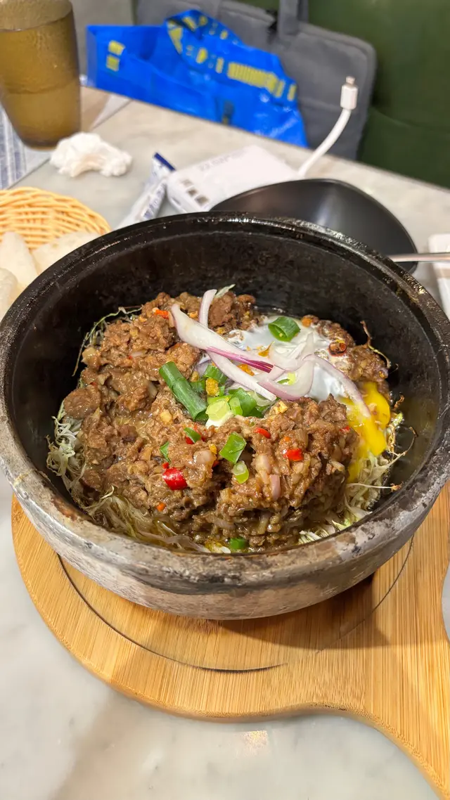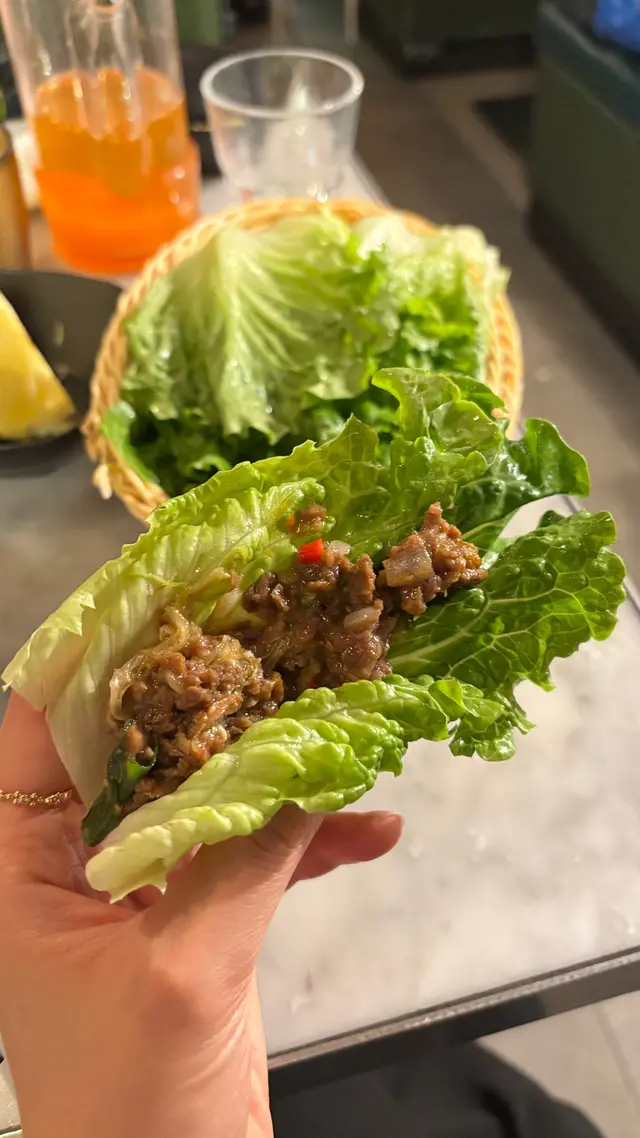 石鍋牛生菜包:生牛肉靠石鍋餘溫燙半熟,撈流心蛋漿好滑溜,生菜包肉蘸魚露,清新惹味但牛肉可多啲。