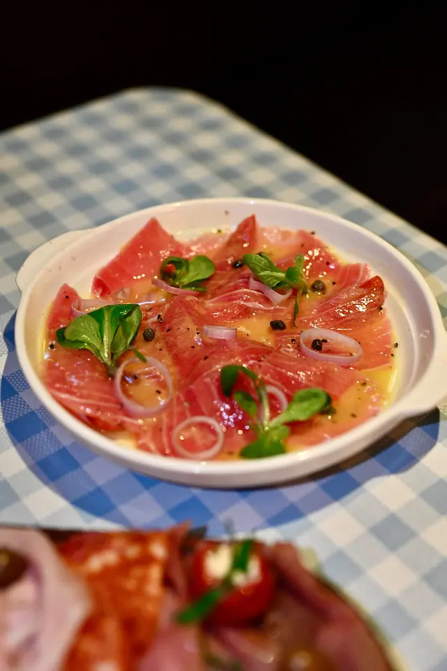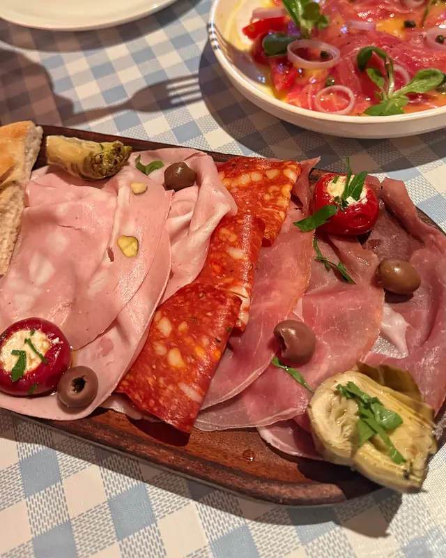 包含帕爾馬火腿、莎樂美腸、醃製洋薊等,搭配佛卡夏麵包,鹹香豐富,適合分享~