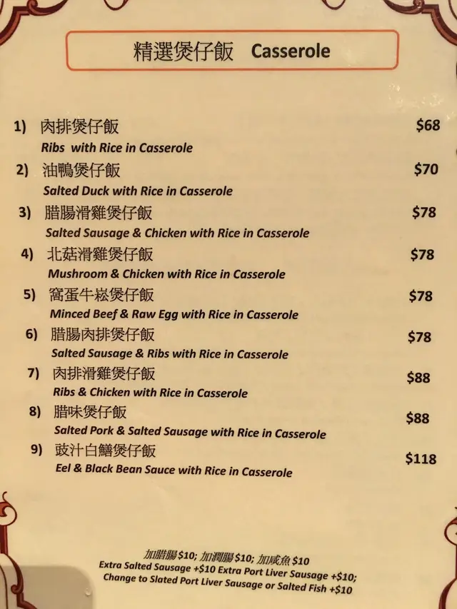 肉排滑雞煲仔飯($88)貨真價實,真的採用明火及瓦煲、由生米煮成熟飯,足足等了接近30分鐘。見到煲飯之後,餐廳經理特別提醒還需要焗多三至五分鐘,餸料才能完全熟透。睇情況,「匯寶小廚」廚師煮煲仔飯應該有一手,不會用明火將餸菜煮到全熟,以免過火肉質變得粗糙。
