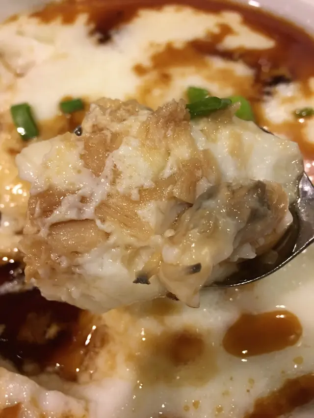 材料非常豐富,每一匙蛋白都滿佈瑤柱絲及原隻蜆肉,味道又調較得相當適中。出乎意外地,雖然蛋白表面出現氣泡,但仍然想當嫩滑;水份及生蛋白的比例也調教得很恰當,沒有出現蛋白結成硬塊的情況。這味小菜唯一不足之處,就真的只是賣相而已。