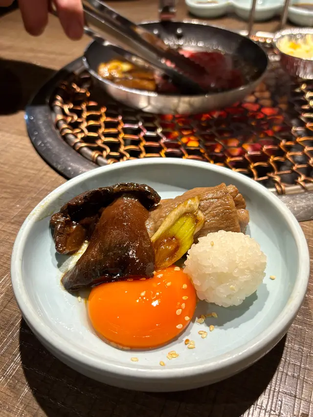 呢個真係必食👍🏻店員先將和牛用壽喜燒汁燒,再擺靚靚先比你😚睇住成個過程都令人超期待😆壽喜燒和牛混合蛋汁真係香甜幼滑😋和牛油花均勻,入口即化🤤再配搭一粒飯🍚真係每一啖都係幸福感🥰