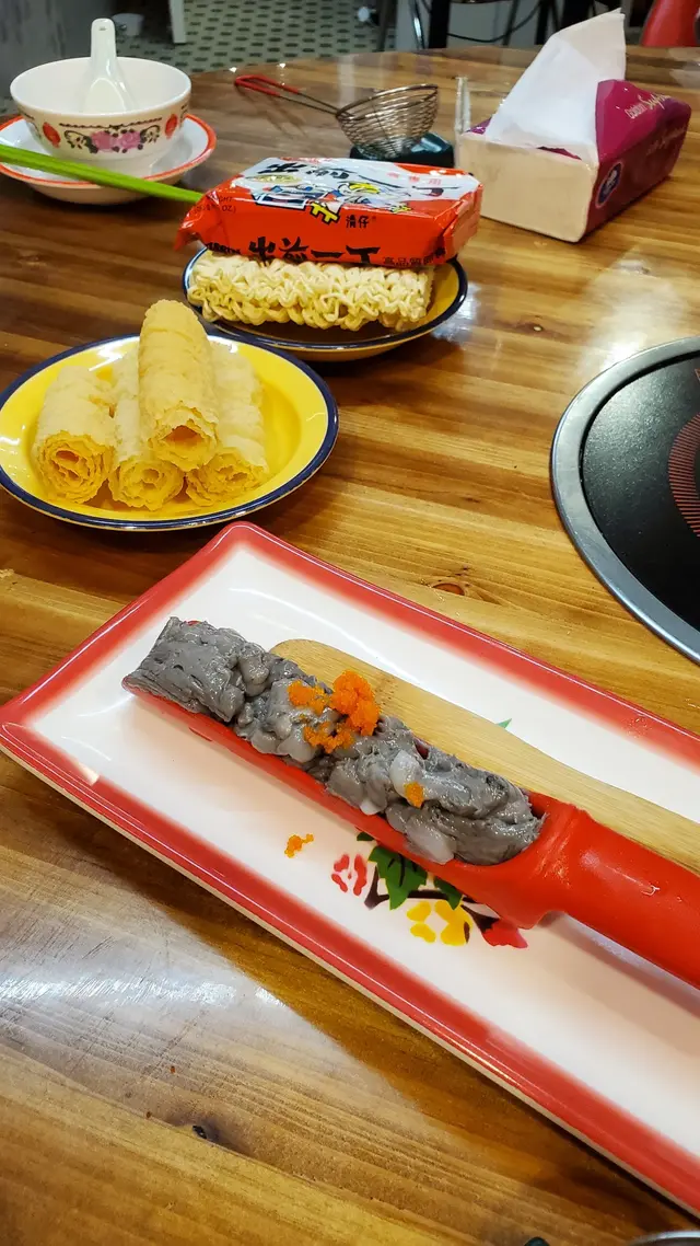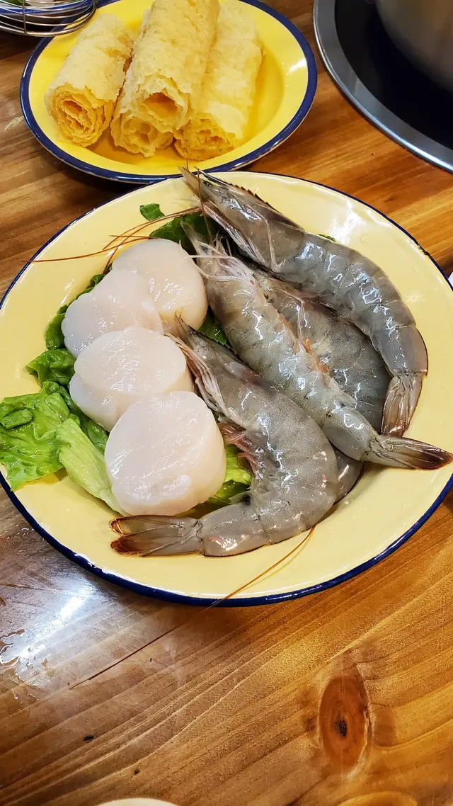 仲有豬肉片(可選羊肉)、帶子、墨魚及海蝦都幾新鮮;蟹子墨魚滑超好食,每啖都有粒粒墨魚爽口彈牙;
