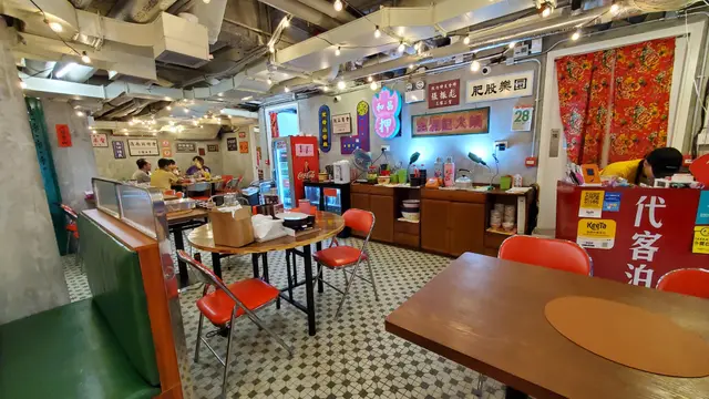 餐廳裝潢是香港八九十年代的懷舊風格,都有好幾個打卡位可以影,餐桌是大排檔常見的摺椅跟木檯,連餐具都好懷舊,不停播張國榮、梅艷芳等經典金曲,帶外國朋友來食飯也是不錯的選擇。