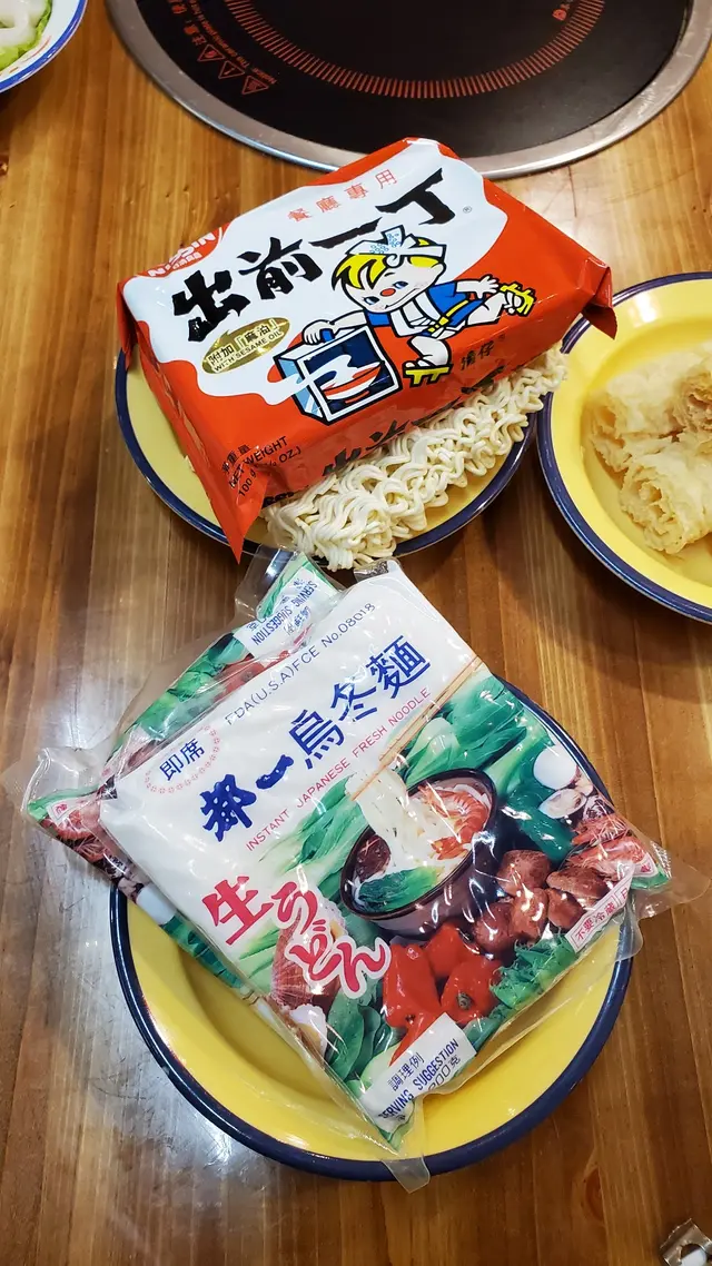 另有烏冬、大光麵及出前一丁,食完這些火鍋配料都夠飽;重點一提的是必食其招牌沙嗲湯底,非常濃郁好味,不辣而且帶少少香料及甜味,不過煮得太耐時要再加水不然就會偏咸;至於麻辣湯底味道可以再勁一點,麻香不夠。