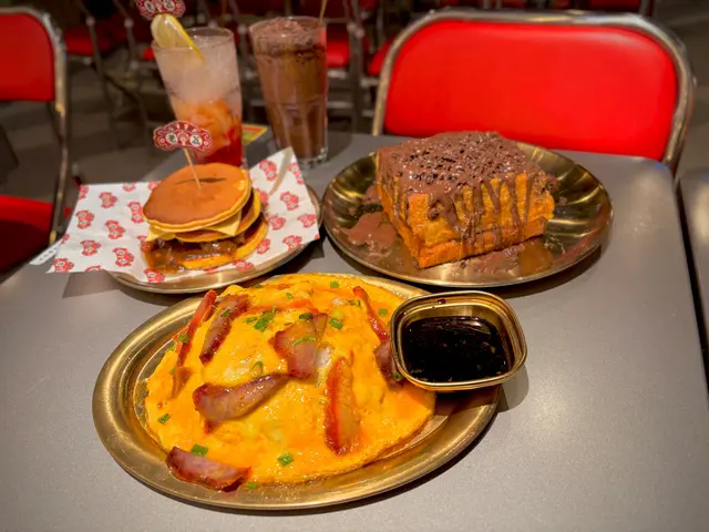 ✨ 沙嗲牛肉芝士熱香餅漢堡($48),這份漢堡創意十足,只睇名鹹甜交織已經好吸引到我嘅眼球。熱香餅夾住沙嗲牛肉同芝士,味道豐富,創新度高。🥞🧀🐮