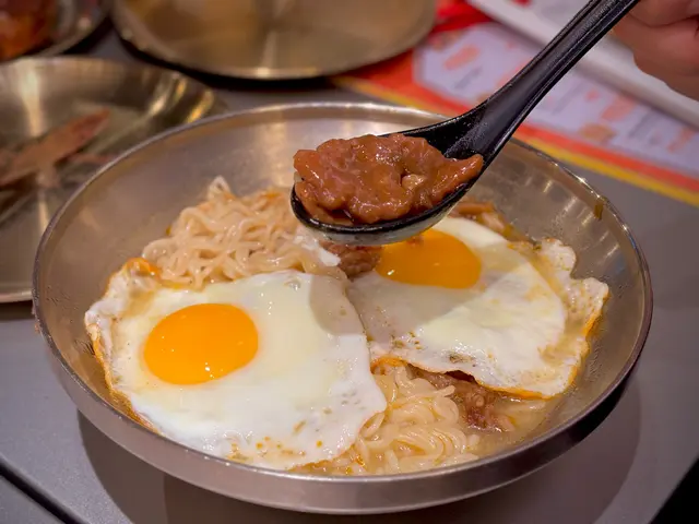 ✨ 老荔特餐($58),選了沙嗲牛肉煎雙蛋公仔麵作為主食。沙嗲牛肉味道濃郁,牛肉嫩滑,公仔麵煮得彈牙,再加上兩隻煎得金黃嘅太陽蛋,真是到茶記必點的沙嗲牛。🍜🍳🥩