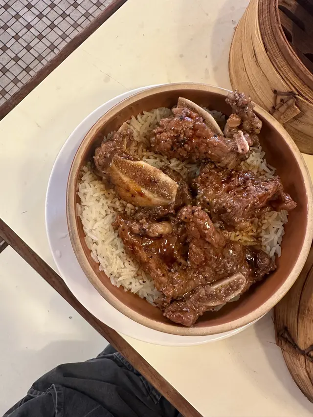 用了砵仔蒸,大概有4-5件,牛仔骨好重黑椒味 ,肉質鬆軟,易咬口!