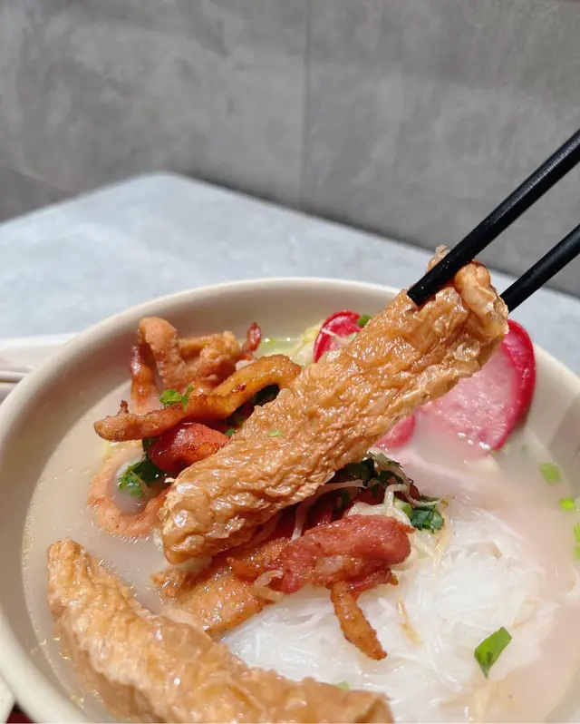 湯底由大地魚和蝦精心熬製,🥣每一啖湯都保留著大地魚的鮮甜味道,濃香十足。加上以幼滑米線, Nat最後飲曬成碗🥰
