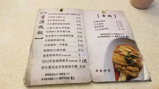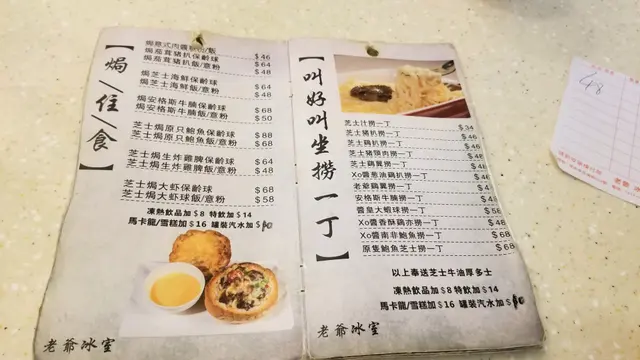 今日行去鴨寮街買啲嘢,見肚仔餓,行落汝州街睇下有乜好嘢食,見到呢間茶記(老爺冰室)望入去裝修又幾特別,即管入去坐底叫啲嘢食下,餐牌唔覺有茶餐食,不過啲餐都唔算特別貴,而且大部份一樣可以加幾蚊有凍飲,所以問題不大,今次我叫咗牆上面個黑板所寫嘅餐,如無記錯好似係叫(鮑魚片福建炒飯),因我叫完後,黑板餐牌D餐就比刷走了,未來得及影底叫乜名😅,跟餐有湯有餐飲,埋單盛惠$48,整體味道不錯,但我個人覺得份量少了點(可看下圖),還有個飯如果熱返少少就perfect 喇😉,奶茶尚算正宗,而今次嘅餐湯係西洋菜湯……正