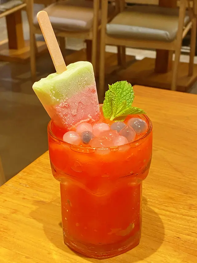 好搞笑,成支西瓜雪條插入杯沙冰度,非常消暑。