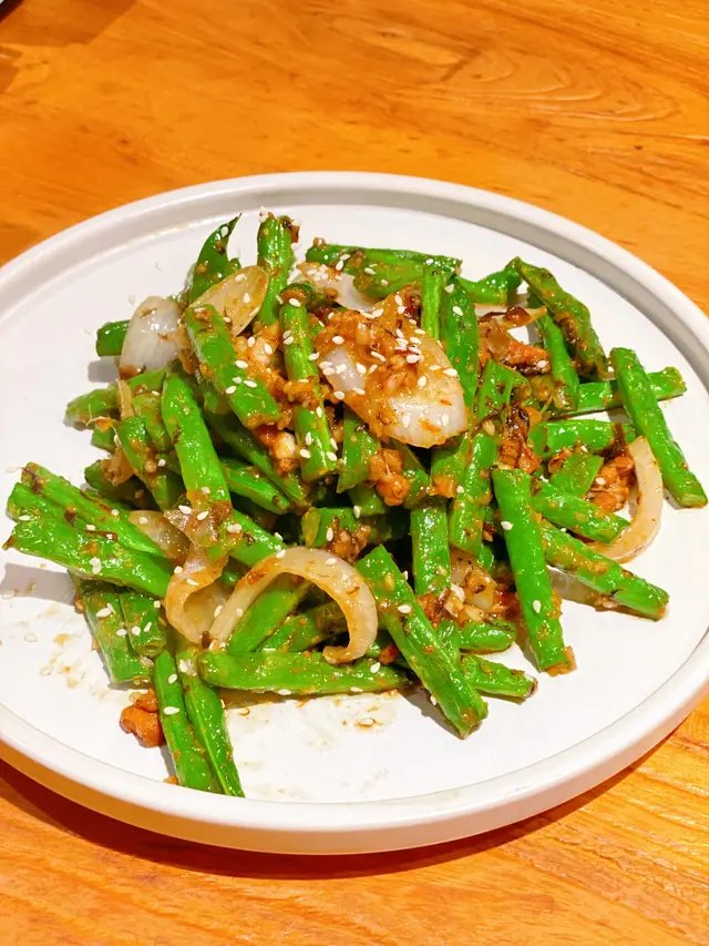 中式小菜常見嘅炒四季豆,加埋台式魯肉,惹味。