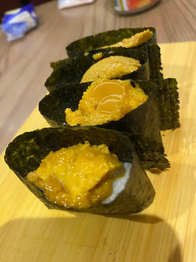 佢仲有幾張海膽壽司同手卷嘅紙,係俾你另外寫嘅,質素可以,因為呢個價好難俾到啲好靚嘅海膽你,但海膽個原味都喺返度,唔會有咩異味先,啲顏色金金黃黃算對辦