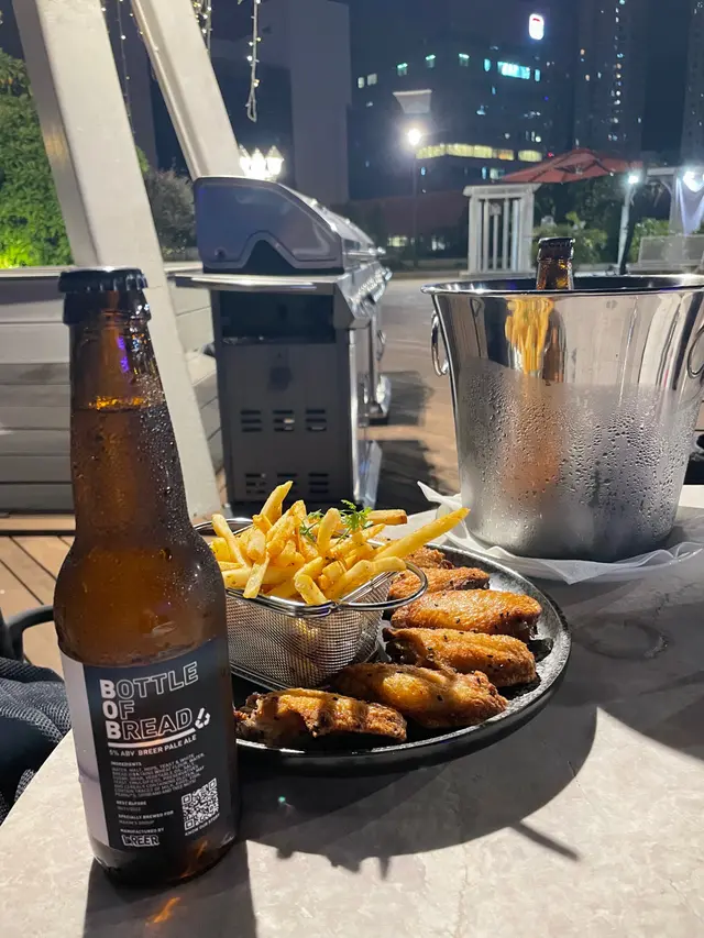 3支手工啤,雞翼同薯條