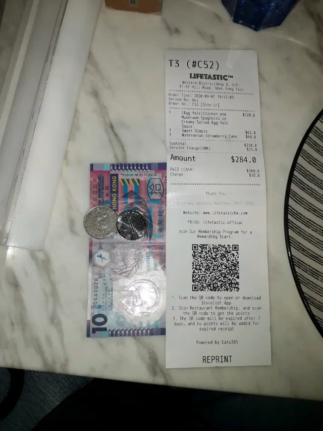 我從「西貢」來到「石塘咀」「LIFETASTIC」,時間已經接近晚上八點,非常接近「LIFETASTIC」打烊休息的時間,我豈不是最後一名顧客?所以我點餐後,侍應急着先跟我結賬,然後才把食品飲品送到。