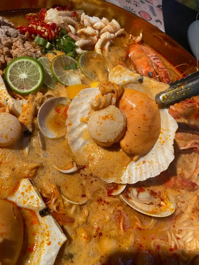 大獲麵真係好壯觀,四隻大扇貝好厚肉,蝦都好大隻又彈牙,舖低嘅公仔麵係吸收哂啲冬蔭湯味,冬蔭湯好好味,酸味同鮮味都有,有小小辣椒一邊煲住,令味道更豐富,真係好有食慾💯💯如果需要加湯烚其他食物,店員係會1+1清水同冬蔭功湯咁樣加,咁就唔會太濃味或者無味👍🏻