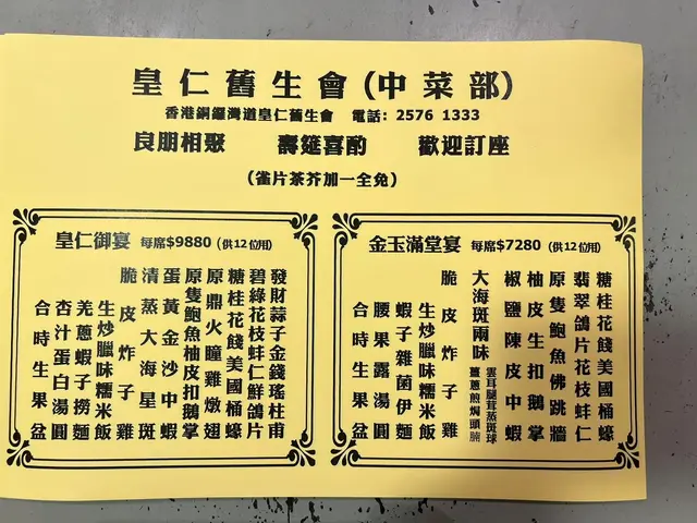 皇仁舊生會(中菜部)嘅名氣都好高企,正所謂「未食過都一定聽過」。難得有機會認識嘅一位皇仁舊生,隨口問佢有無食過,點知佢好爽快咁就即時預訂咗一圍,打算同我地一齊試吓。