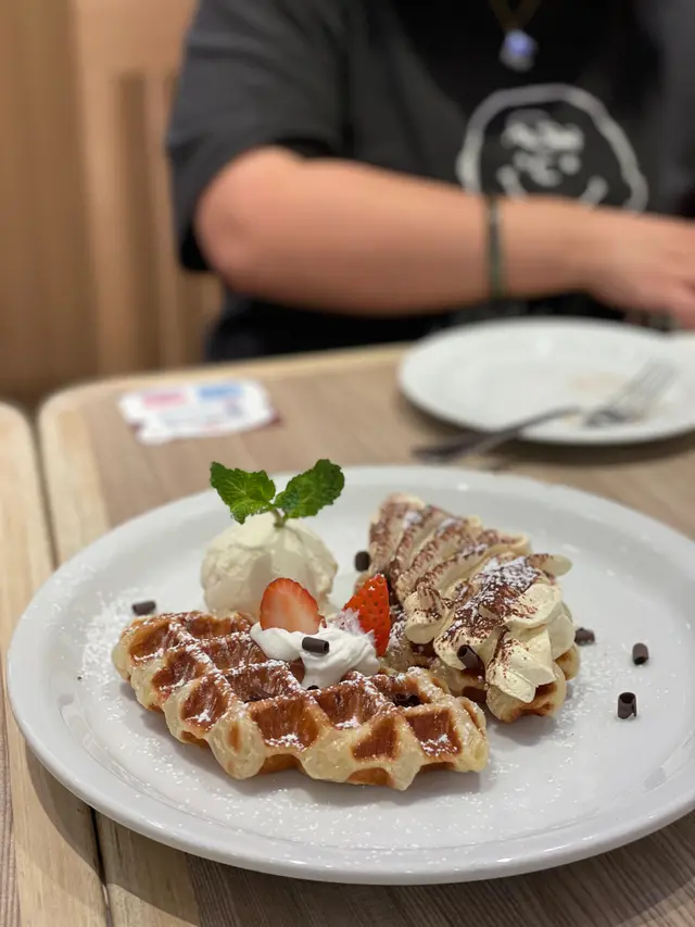 將經典的提拉米蘇風味放到窩夫上,輕盈的奶油和咖啡香氣交織在一起,又不會過於甜膩。