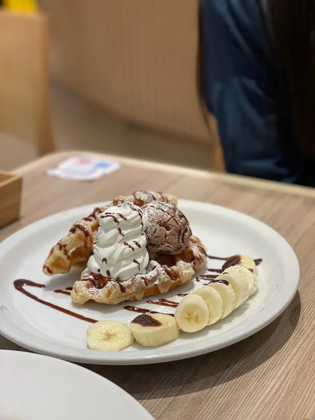 他們家的甜品比主菜較出色,點了一份香蕉朱古力牛角酥窩夫。鬆脆的窩夫在刀子切下時已聽到鬆脆的聲音,巧克力雪糕融化到窩夫裡,加上濃郁的巧克力醬和香甜的香蕉,每一口都讓人心情大好,感受到滿滿的幸福感。