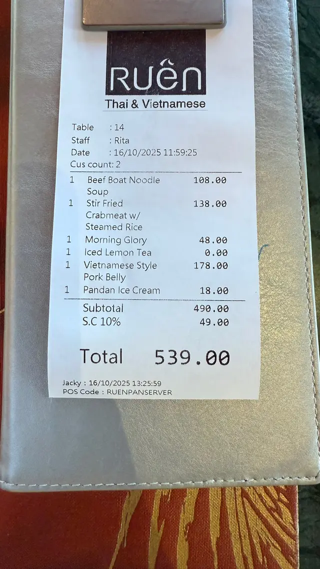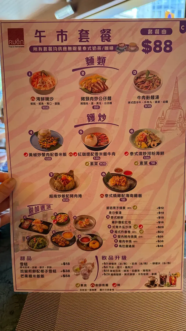 📸 必試尖東Ruên Thai & Vietnamese!一入餐廳,紅色主題、東南亞風情裝潢,秒飛泰國+越南,氛圍超chill~放鬆到唔想走,成班friend聚會都啱晒!氣氛又好,仲有浪漫的感覺,唔怪得咁多靚仔靚女去排隊~