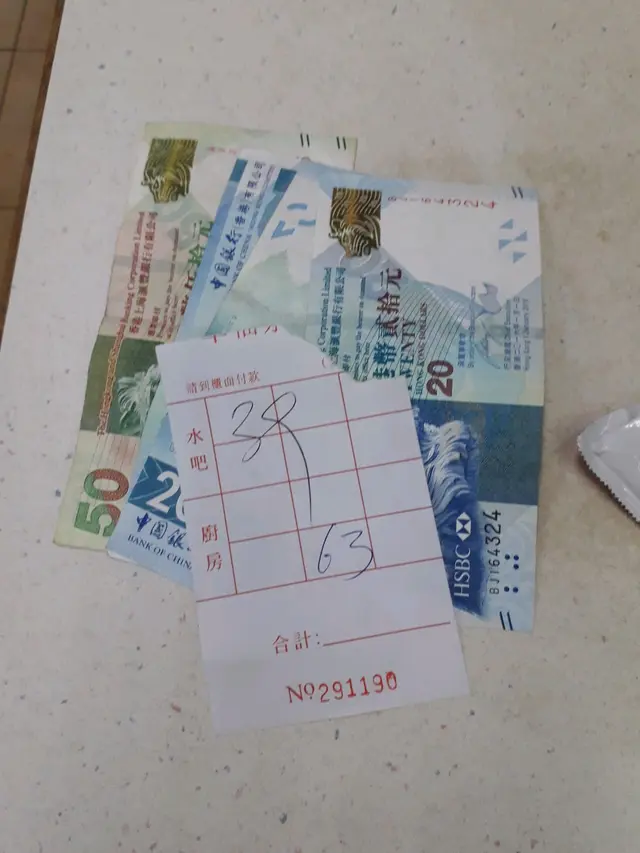 等到我終於食完「幸福茶餐廳」炸得外層雞皮脆,內裡面雞肉軟嫩的小食「炸脆香雞髀」,和喝完甜味「凍奶茶」飲品之後,我走到餐廳的櫃檯面前結賬埋單,取回收據跟外賣自取「咖喱牛腩飯」。