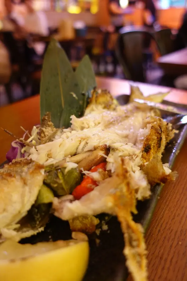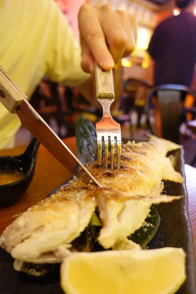端上後,店員在我們介開魚肉,熱辣辣,香氣撲鼻,只有一條大魚骨,啱哂怕吐骨的我。急不及待吃一口,雪白的魚肉嫩滑可口,鹽燒令魚肉魚皮充滿咸香,格外美味。
