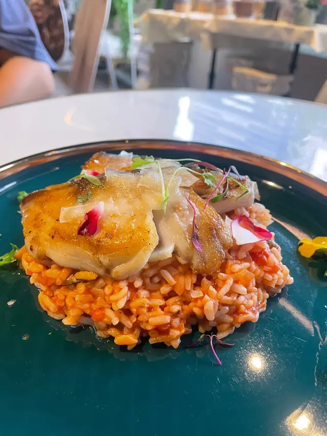 銀鱈魚煎到魚皮好香脆,魚肉嫩滑,有少少長的魚骨,食的時候要小心啲。每一啖意大利飯都充滿蕃茄醬汁,調味做得幾好。