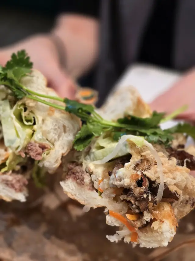 值得一讚,法包即叫即烘👍 外皮酥脆,內里柔軟,呢種口感同喺越南嗰陣時食嘅一樣🤩 扎肉同烤豬肉味道都唔錯,仲有肉鬆同滿滿嘅蔬菜,增加咗甜味👏 肝醬同蛋黃醬,豐富咗味道之外,亦都令口感更加濕潤🫶🏻 呢個包份量好大,建議兩個人share食😆