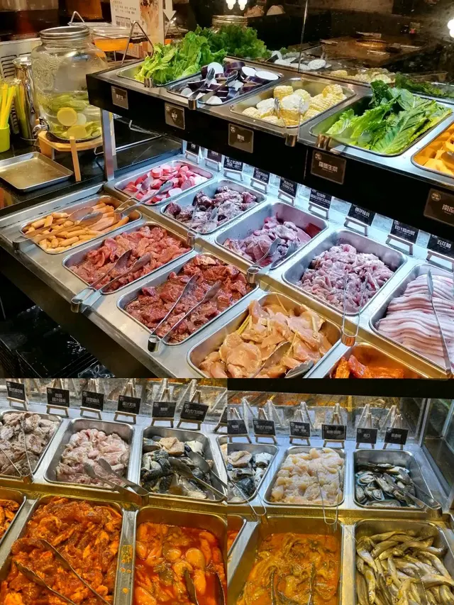 全部野食都係出面拎,有一系列既小菜、冷盤、甜品吧、雪條櫃、各款燒肉蔬菜、飲品,仲有三文魚刺身任食😍。