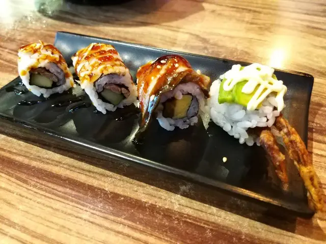 創意壽司細細件,一口一件,當中有軟殼蟹,和牛、蒲鰻。