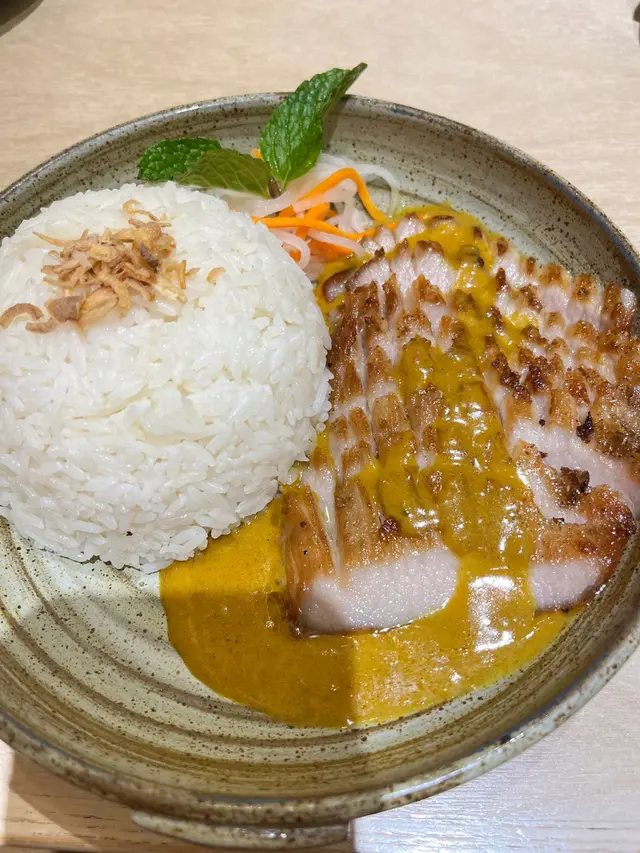 另一款主食係馬來咖喱烤豬頸肉配白飯,咖哩汁唔會好辣,適合男女老少都岩食,豬頸肉非常有口感,配白飯食一流。
