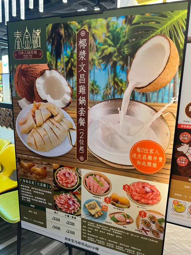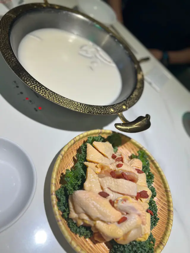 湯底用椰子水慢煮文昌雞,椰香濃郁,雞肉嫩滑鮮甜,啖啖入味。文昌雞皮薄肉嫩,蛋白質高低脂,配椰漿天然甜味,暖胃又養生,火鍋底清甜不油,煮海鮮蔬菜都一流。