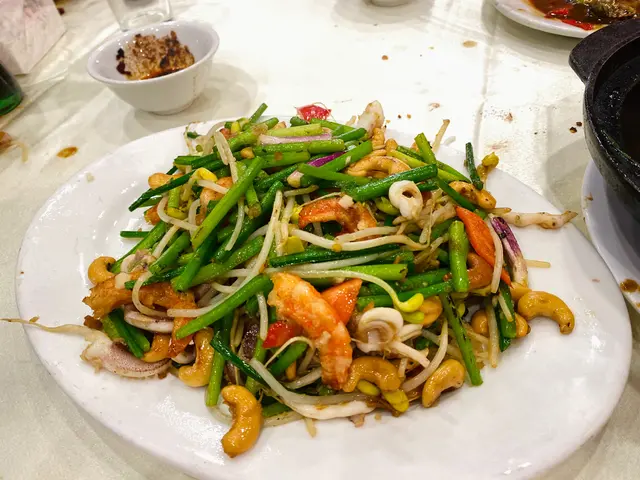 有韭黃、蝦乾、魷魚、腰果、芽菜