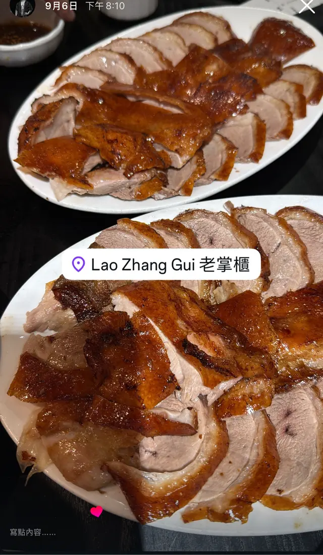 抵食片皮鴨 Ck0929等级42025-09-17560 浏览 关注 老掌櫃的片皮鴨真的是讓人驚豔!一進去就能聞到那股誘人的香氣,忍不住已經開始流口水了。鴨皮烤得金黃酥脆,咬下去的瞬間,酥脆的口感配上多汁的鴨肉,簡直是完美的組合。搭配薄薄的餅皮、一點甜醬和蔥絲,每一口都讓人欲罷不能。除了片皮鴨,店裡的特色菜也不容小覷。像是他們的蒜蓉炒生菜,清爽又不油膩,正好平衡了鴨肉的豐富口感。還有那道紅燒肉,肉質軟嫩,肥而不膩,醬汁入味得剛剛好,讓人忍不住多吃幾碗飯。服務方面,店員親切又周到,讓人感覺賓至如歸。整體來說,老掌櫃不僅菜色美味,還有著濃厚的家庭氛圍,絕對值得再來!以上食记乃用户个人意见 , 并不代表OpenRice之观点。1分享抵食片皮鴨 老掌櫃東北菜館 (利奧坊) https://s.openrice.com/QrLT0Xt1U00检举 张贴 评分5味道5环境5服务5卫生5抵食用餐途径堂食人均消费$250