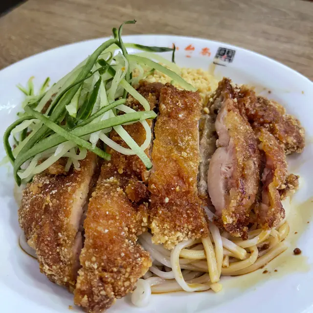 鹽酥雞扒🐓肉燥乾畔麵🍜好惹味🤤,鹽酥雞扒好大塊香脆肉嫩,配少少🤏青瓜絲🥒一齊食無咁油膩,麵🍜可以揀粗或幼,我哋揀咗幼麵拌埋肉燥同花生🥜碎食好有層次感😋。