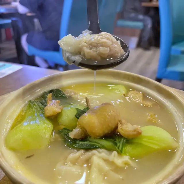 砂鍋雲吞雞🍲可以揀一人份量或者一鍋,我哋揀咗一鍋🤤,上枱嘅時候仲滾緊🤩好激烈,湯🥣清味濃好鮮甜,🍗雞件嫩滑好食,雲吞都幾大粒😋同幾有肉香👍。