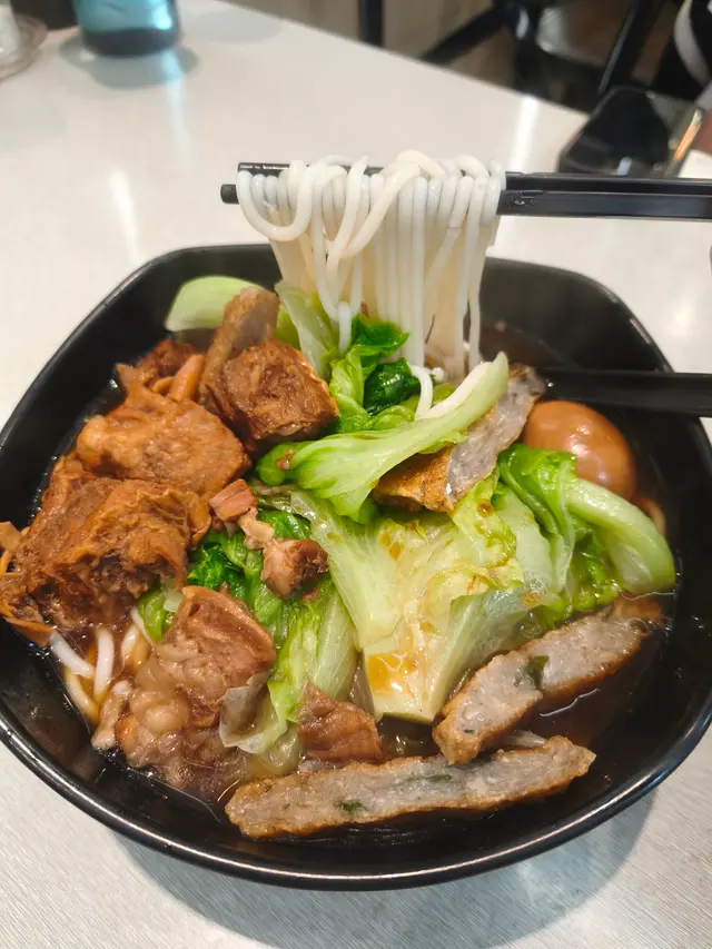 生菜、牛腩、魚餅、鹵水蛋米線(加底)+$10