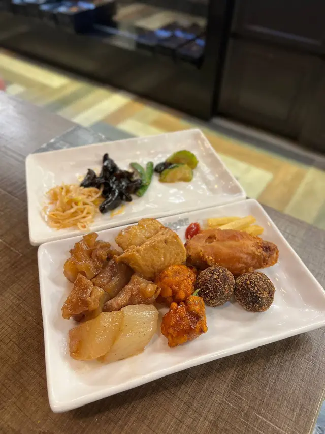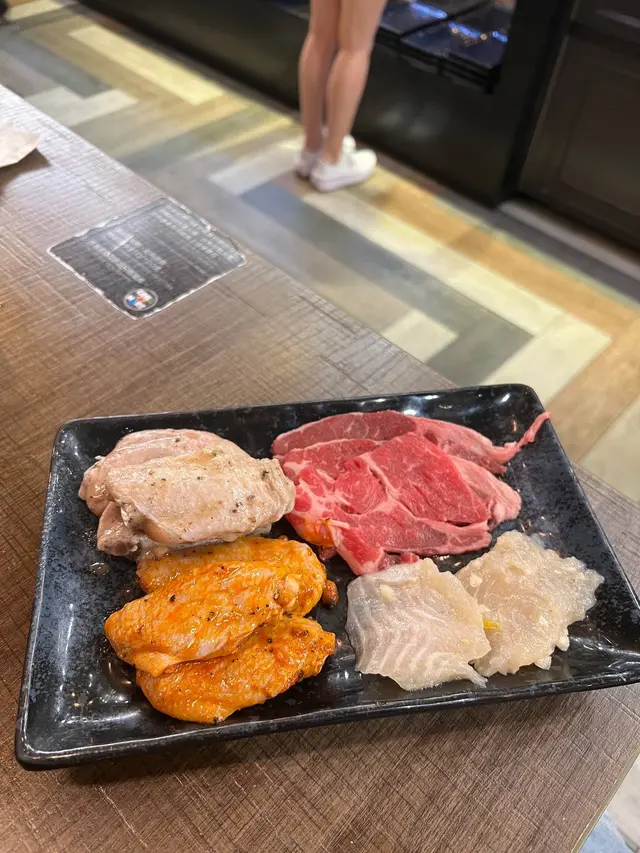 自助形式喺出面夾嘅 不同款式同埋調味嘅豬牛雞都可以搵到🫢 豬肉方面特別想推介豬仔骨 雖然比較厚身要燒耐啲 但係呢啲近骨位置嘅肉係非常嫩滑🥰 蜜汁叉燒 五花腩 沙薑雞扒 都幾好 韓式雞中翼 炭燒燒汁雞翼 呢兩樣真係人氣之選🐥 牛肉都有好多款式 特別鍾意呢個安格斯黑椒洋蔥牛柳粒 細細粒容易燒又易熟 極尚牛肋骨 汁燒牛舌 韓式護心肉 樣樣都幾好👍🏻