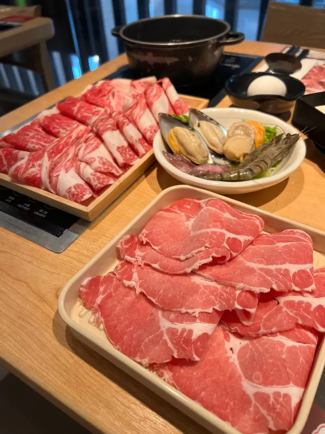 多款湯底選擇,我們選了博多豚骨濃湯及關東風壽喜燒,我個人認為最能帶出材料味道。