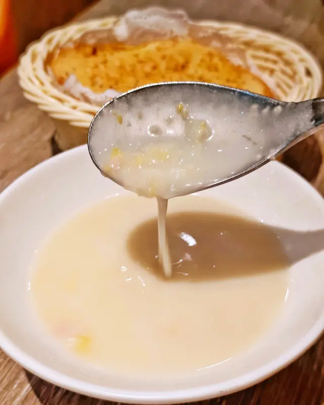 忌廉湯🥣入面有火腿同粟米🌽等配料,每一口都有層次感,味道好實在,確實係好有懷舊西餐廳嘅feel😋。