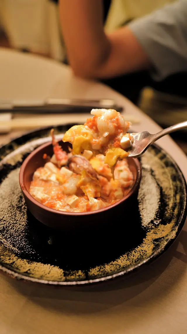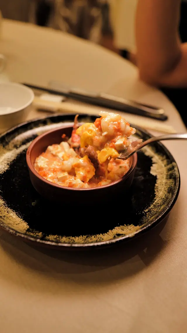 「燴」煮的拆蟹肉、龍蝦和豆腐,
