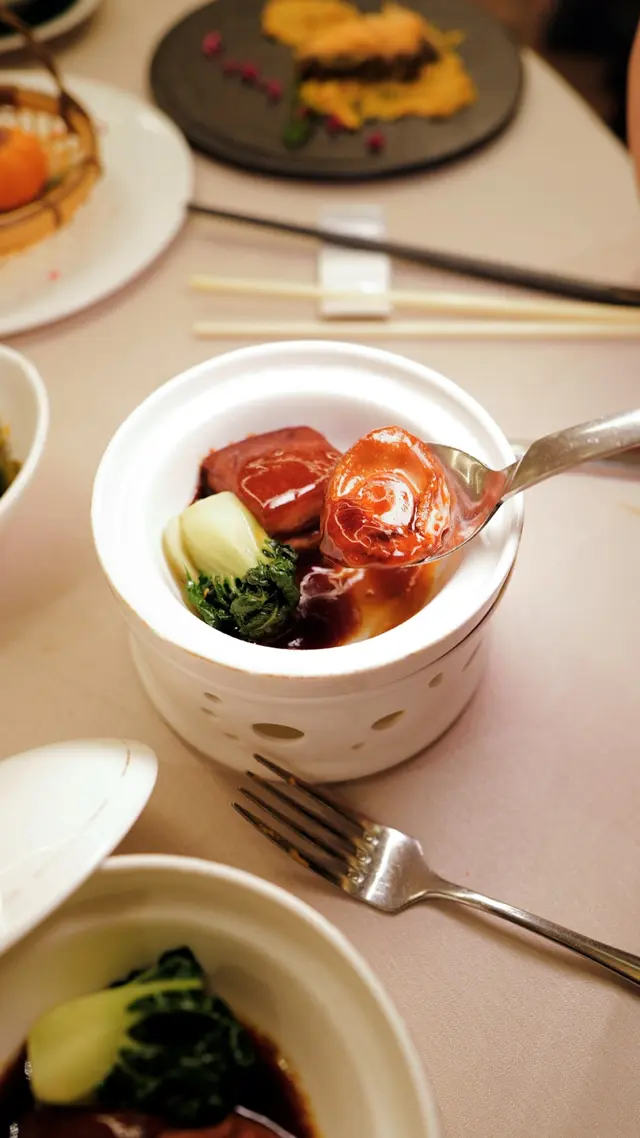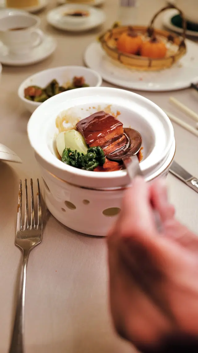 「炆」煮的東坡肉肥而不膩,鮑魚軟糯彈牙,