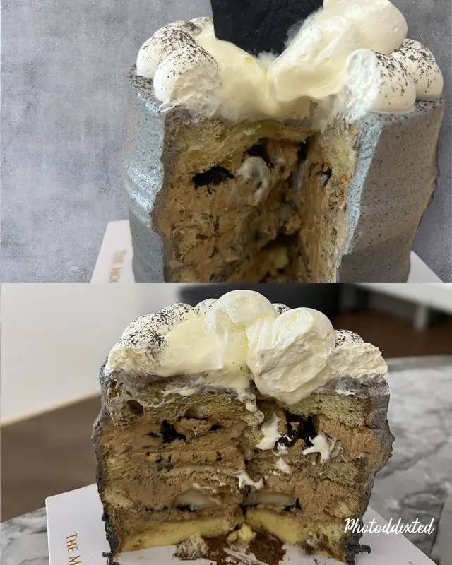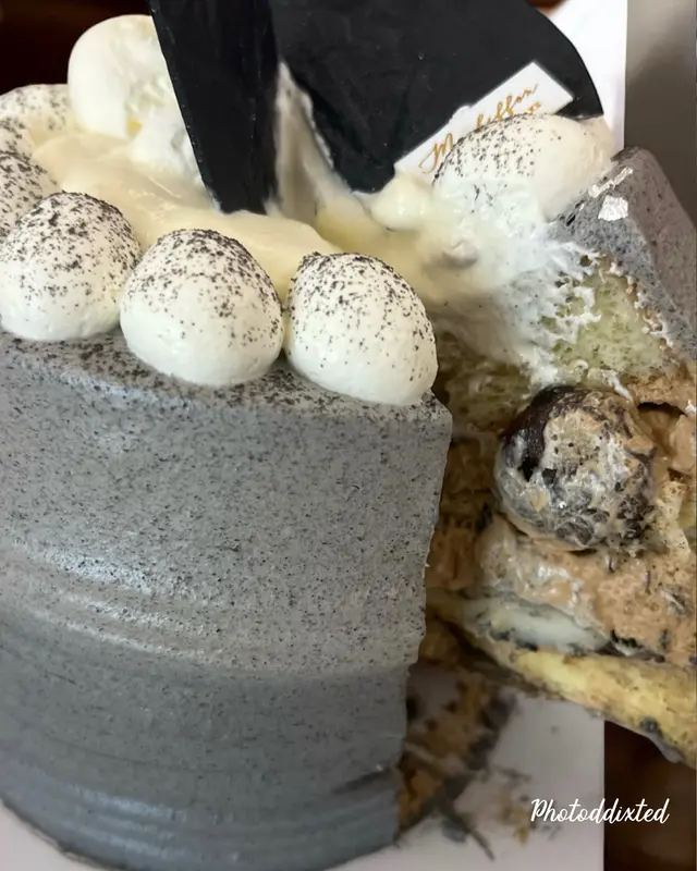 🤔店如其名專注做麻糬戚風蛋糕 成個蛋糕好高身所以層次分明 表面覆蓋住芝士海鹽🧂奶蓋 然後係黑芝麻忌廉 再嚟係厚身嘅可可咖啡酥餅再加層黑芝麻醬 下層係咖啡拿鐵忌廉 最下有招牌麻糬同戚風蛋糕🍰