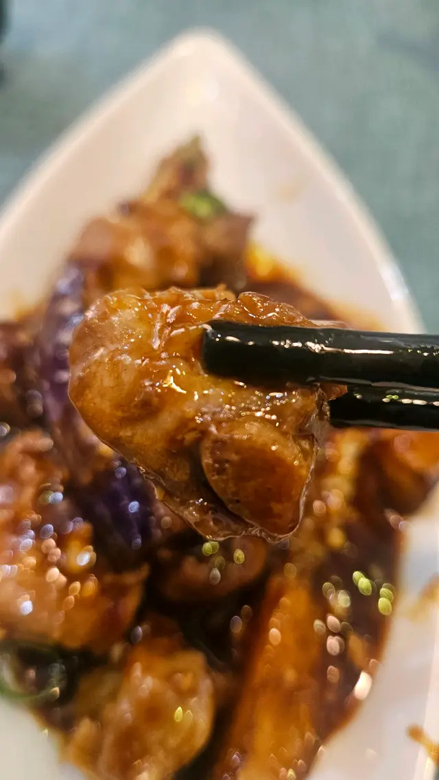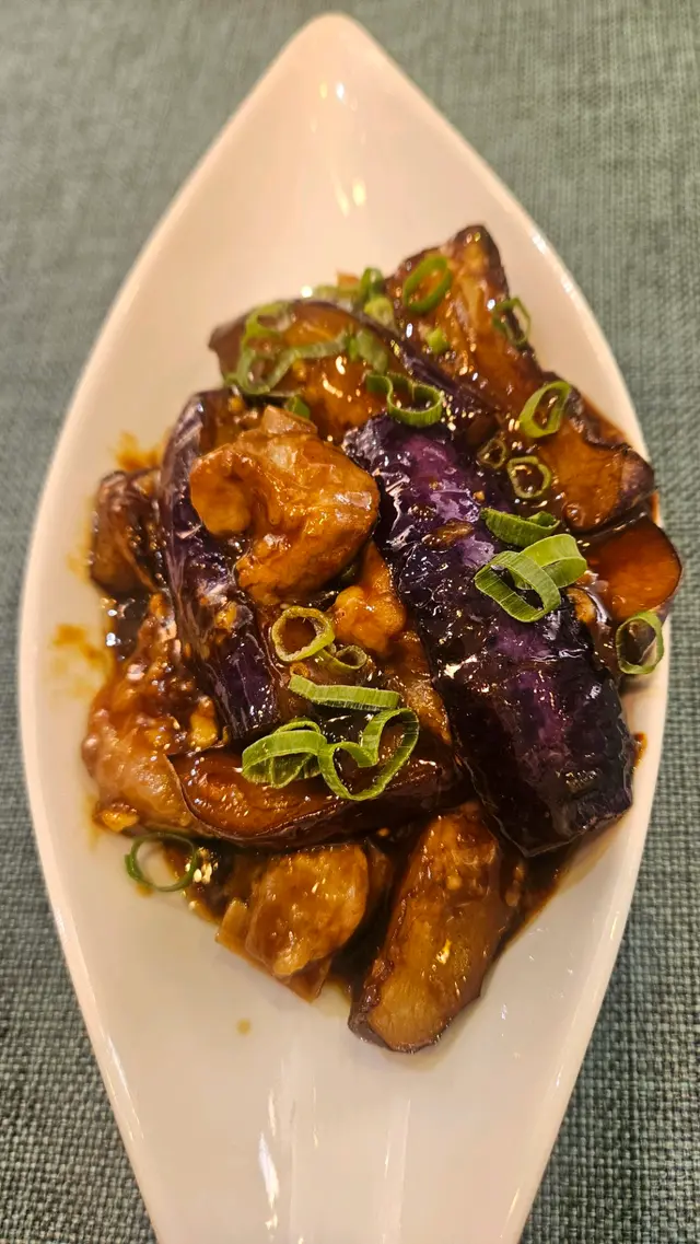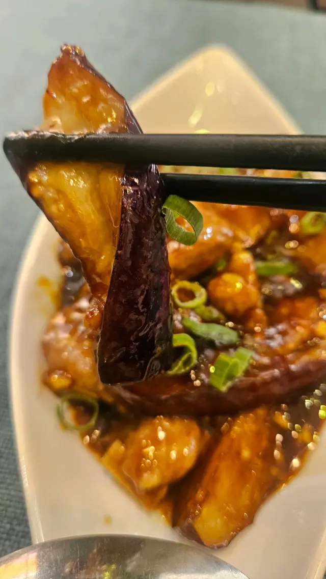 排骨燜得軟嫩入味,輕輕一咬就骨肉分離,醬汁濃郁帶點豆豉和蒜香,微甜微鹹很下飯。茄子外皮保持完整,內裡綿軟吸滿醬汁,入口即化卻不會爛糊!