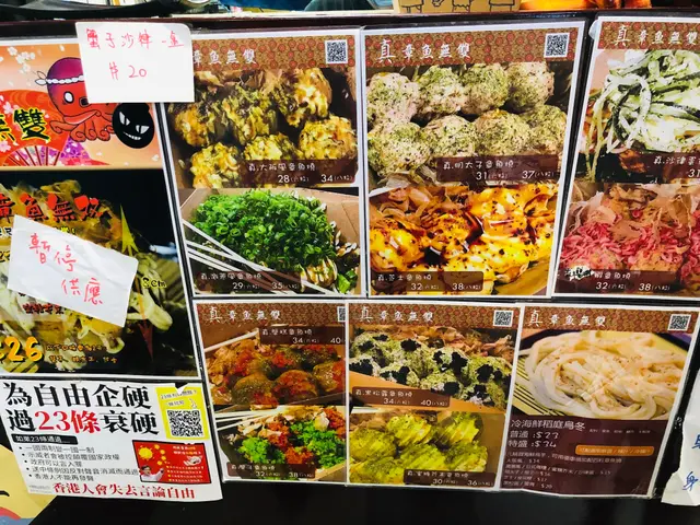 篤起每一粒沾滿醬的章魚丸,連上面黑飛魚籽,放入口