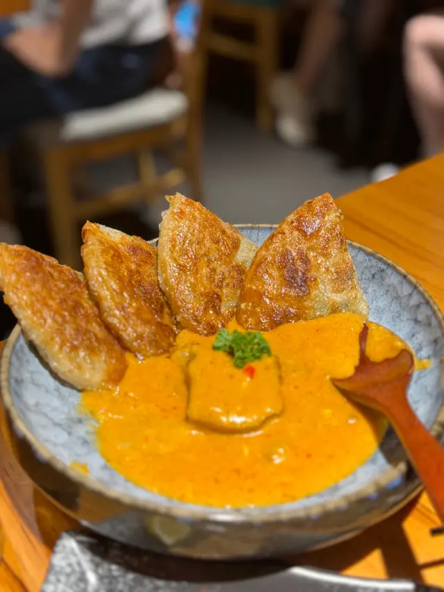 手抓餅有香䓤在內,配上咖喱汁非常香濃,單吃也非常出色! 內裏仲有好多塊牛舌,撈埋一齊食,正!