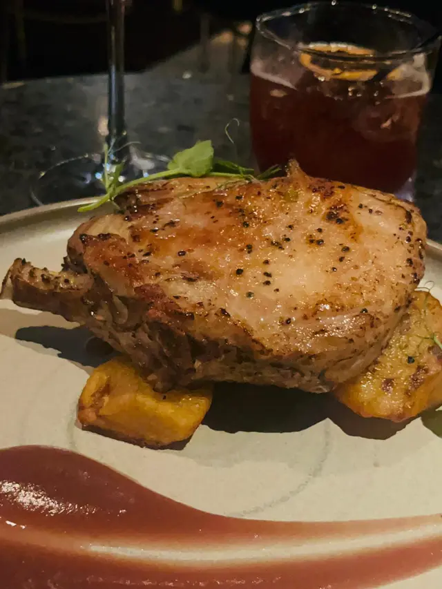 黑毛豬肉質細緻嫩滑,經慢煮後更添風味,搭配烤得恰到好處的蔬菜,清爽開胃。