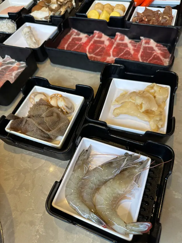 食材多元化,我哋都點咗好幾款,一開始緊係要試吓Prime Grade牛肉片,肥瘦平均,肉質唔錯,食落有油脂香👍🏻而無激素豬肉片食得夠安心之餘,肉香都幾好,唔會嚡熠熠