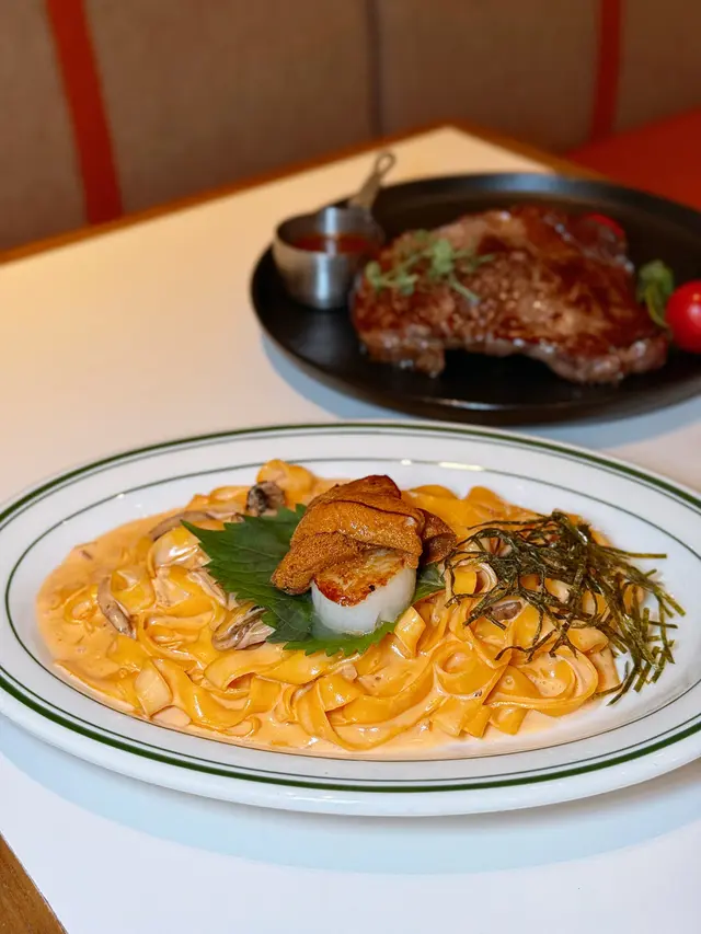 新鮮海膽香煎帶子蟹肉海膽忌廉汁手工闊麵 $188